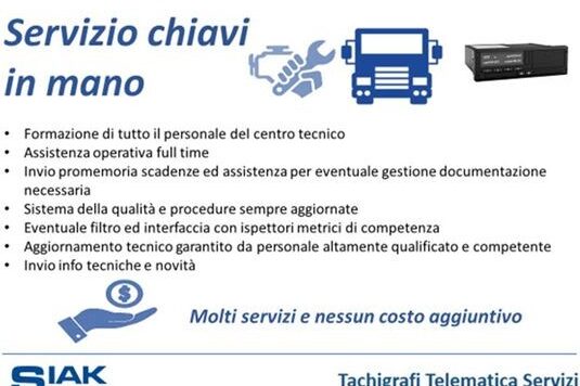 Con l’evoluzione “dell’ecosistema tachigrafo digitale” e con il conseguente incremento degli obblighi di legge per le aziende operanti nei settori dell’autotrasporto, per meglio focalizzare tutte le attività rivolte a tale settore, la SIAK S.r.l., SIAK Firenze S.r.l. e SIAK Savona S.r.l. si sono fuse in: SIAK Solution Srl in cui vengono riunite tutte le competenze relative al tachigrafo ed ai relativi prodotti/servizi per le flotte ed i centri tecnici.